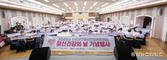 (중앙뉴스타임스 = 방재영 기자) 인천 서구는 정신건강의 날을 기념하여 지난 12일 ‘2025년 정신건강의 날 기념식 및 청소년 정신건강 강연’을 개최했다.
