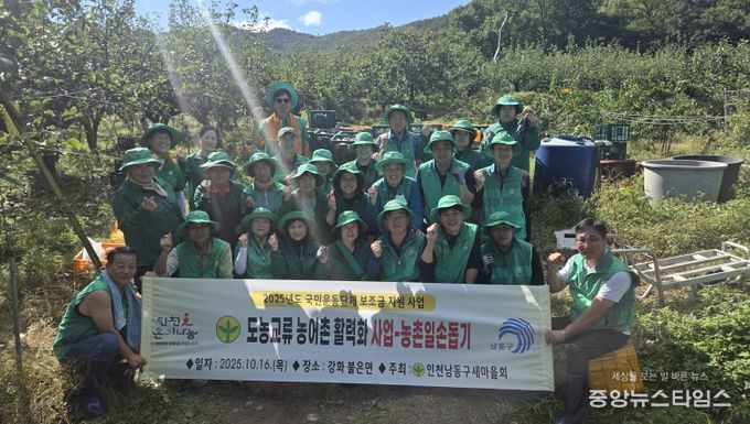 (중앙뉴스타임스 = 방재영 기자) 인천 남동구 새마을회는 최근 강화군 불은면에 위치한 배 농장에서 ‘도농교류 농어촌활력화사업’의 일환으로 배 수확 일손 돕기 활동을 진행했다고 20일 밝혔다.