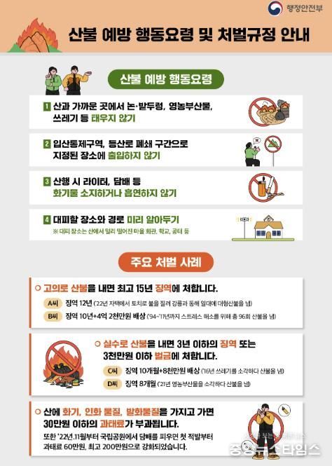 (중앙뉴스타임스 = 방재영 기자) 구리시는 2025년 가을철 산불 조심 기간인 20일부터 12월 15일까지 ‘2025년 가을철 산불방지 종합대책 본부’를 운영한다고 밝혔다.