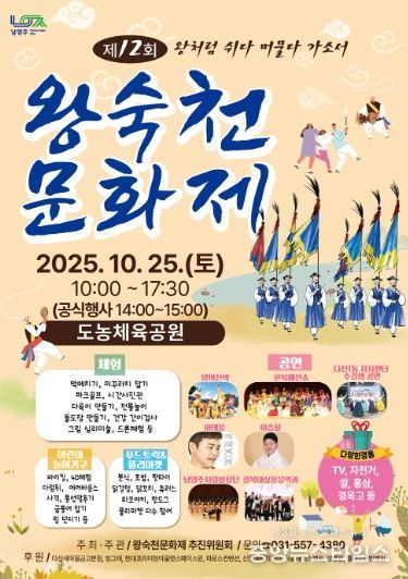 (중앙뉴스타임스 = 이광운 기자) 남양주시는 오는 10월 25일 도농체육공원에서 ‘제12회 왕숙천문화제’를 개최한다.