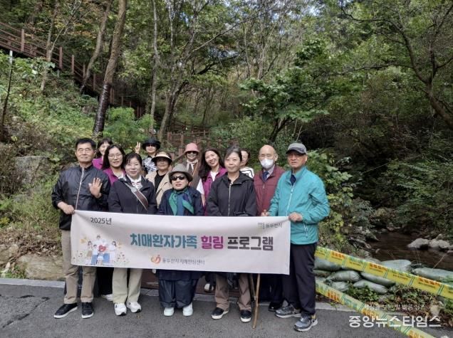(중앙뉴스타임스 = 방재영 기자) 동두천시치매안심센터는 지난 17일 치매 및 경도인지장애 환자 가족의 정서적 안정과 심신 회복을 돕기 위해 동두천 자연휴양림 ‘치유의 숲’에서 산림치유 프로그램을 운영했다고 밝혔다.