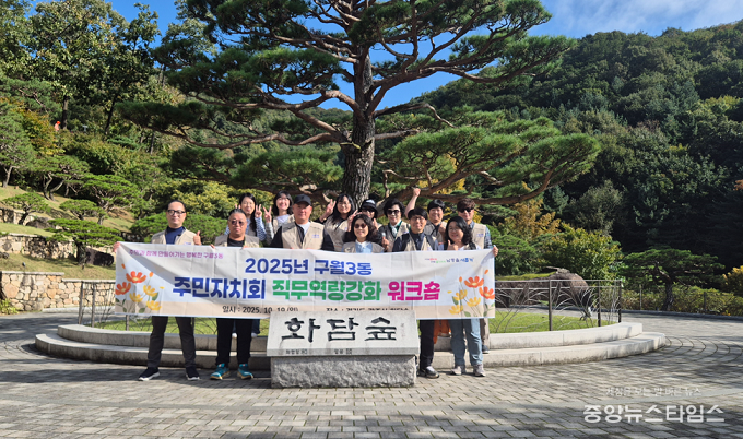 (중앙뉴스타임스 = 방재영 기자) 인천 남동구 구월3동 주민자치회는 최근 경기 광주시 화담숲에서 주민자치회 위원들을 대상으로 직무 역량 강화 워크숍을 실시했다고 21일 밝혔다.