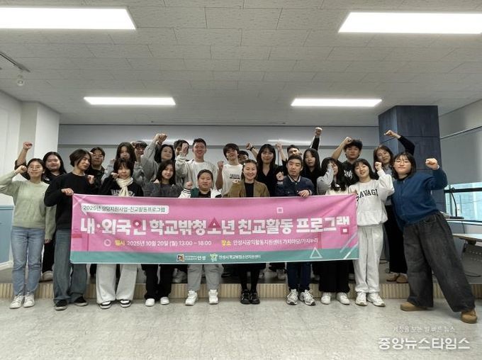 (중앙뉴스타임스 = 방재영 기자) 안성시학교밖청소년지원센터는 지난 20일 안성공익활동지원센터 가치마당·가치누리에서 내·외국인 학교 밖 청소년이 함께 참여한 친교활동 프로그램을 성황리에 마무리했다.