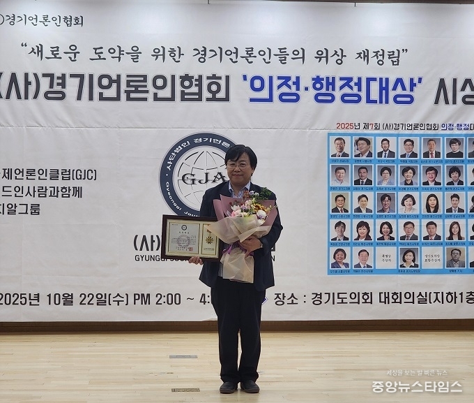 (중앙뉴스타임스 = 방재영 기자) 경기도의회 문화체육관광위원회 조미자 부위원장(더불어민주당, 남양주3)은 22일 경기도의회 대회의실에서 열린 ‘제7회 (사)경기언론인협회 행정·의정대상’ 시상식에서 광역의원 부문 의정대상 수상자로 선정됐다.