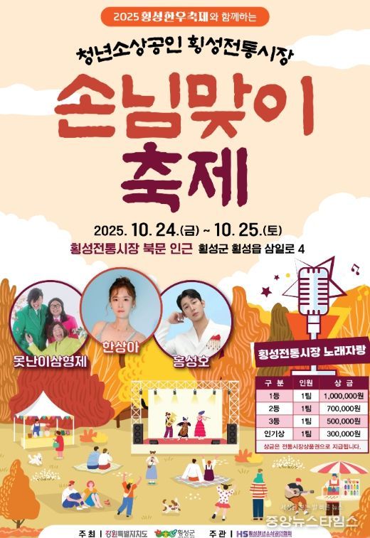 (중앙뉴스타임스 = 방재영 기자) 횡성군은 제21회 횡성한우축제 기간중 24일부터 25일까지 이틀간 횡성전통시장 일원에서 ‘2025년 청년소상공인 · 횡성전통시장 손님맞이 축제’를 운영한다고 밝혔다.
