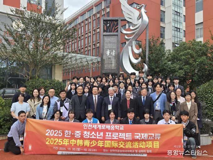 (중앙뉴스타임스 = 방재영 기자) 인천시교육청은 지난 20~22일까지 2박 3일간 중국 상하이에서 진행된 ‘2025 한·중 청소년 프로젝트 국제교류’ 현지 방문 프로그램을 마무리했다.