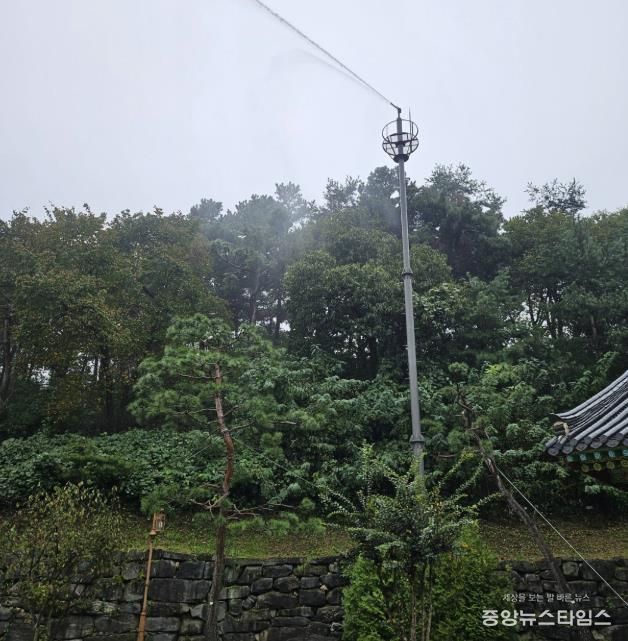 봉녕사 산불소화시설은 19m 높이의 수관수막타워 2기와 40톤 물탱크, 엔진펌프로 구성돼 있으며, 산불 발생 즉시 수막을 형성해 불길 확산을 차단하고 속도전이 관건인 초기 진화에 즉각 대응할 수 있도록 설계됐다. 이번 시운전에서는 장비 작동, 살포 압력, 분사 시간 등을 점검했으며 모두 정상 작동이 확인됐다.