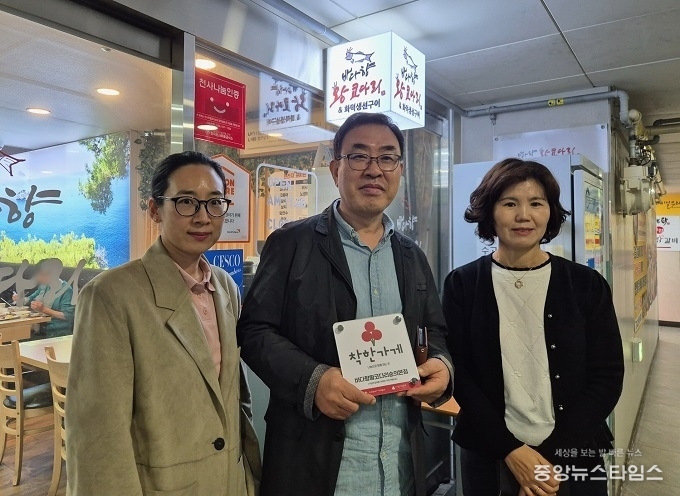 (중앙뉴스타임스 = 방재영 기자) 인천 미추홀구 숭의2동(동장 반지형)은 23일 바다향왕코다리 숭의본점(대표 백계화)에 ‘착한 가게’ 현판을 전달했다.