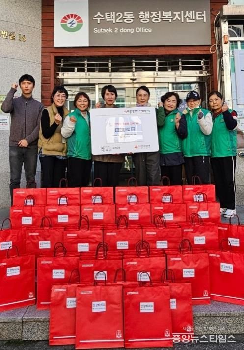 (중앙뉴스타임스 = 방재영 기자) 구리시 수택2동 행정복지센터는 지난 27일 수택2동 새마을부녀회로부터 바자회 수익금으로 마련한 200만 원 상당의 홍삼 50세트를 후원받았다고 밝혔다.