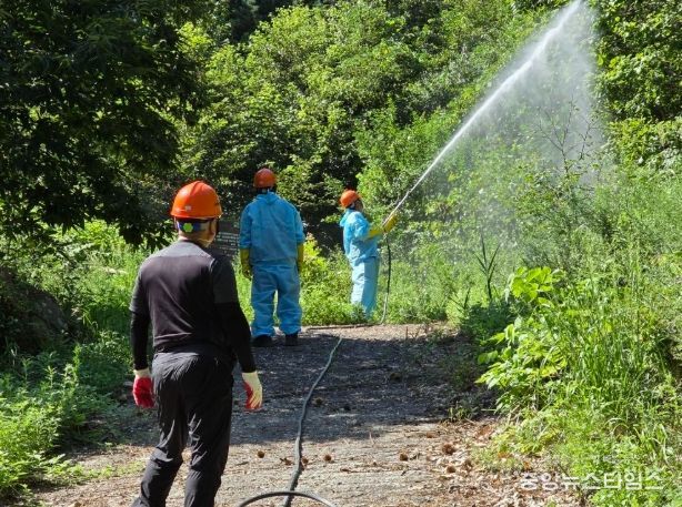 (중앙뉴스타임스 = 방재영 기자) 강릉시농업기술센터가 농림지 병해충 관리를 위해 예찰방제단을 운영하고, 강릉시청 산림과, 강릉국유림관리소와 함께 협업 방제를 하는 등 병해충 예방 관리에 최선을 다하고 있다.