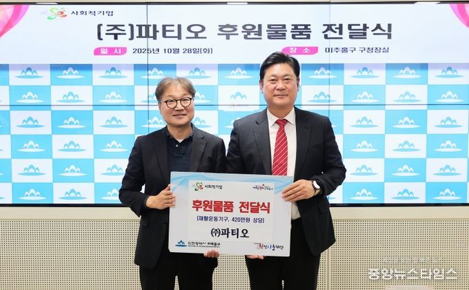 (중앙뉴스타임스 = 방재영 기자) 인천 미추홀구는 지난 28일 구청장실에서 관내 사회적기업인 ㈜파티오(대표 김태균)로부터 재활 운동기구를 전달받았다.