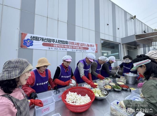 (중앙뉴스타임스 = 방재영 기자) 생활개선광주시연합회는 지난 30일 ‘이웃사랑 김치 나눔 행사’를 열고 지역 내 취약계층 220가구에 정성껏 담근 물김치를 전달했다.