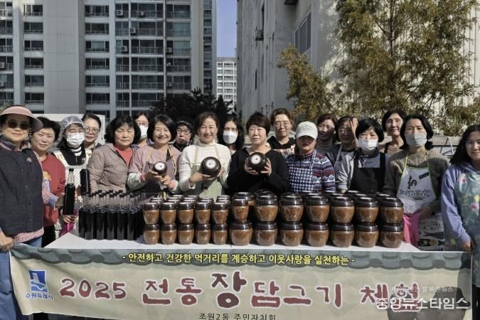 (중앙뉴스타임스 = 방재영 기자) 수원시 장안구 조원2동 주민자치회는 지난 31일 조원2동 행정복지센터 옥상에서 ‘전통 장 담그기 체험’의 마지막 과정인 ‘장 나누기’ 활동을 진행했다.