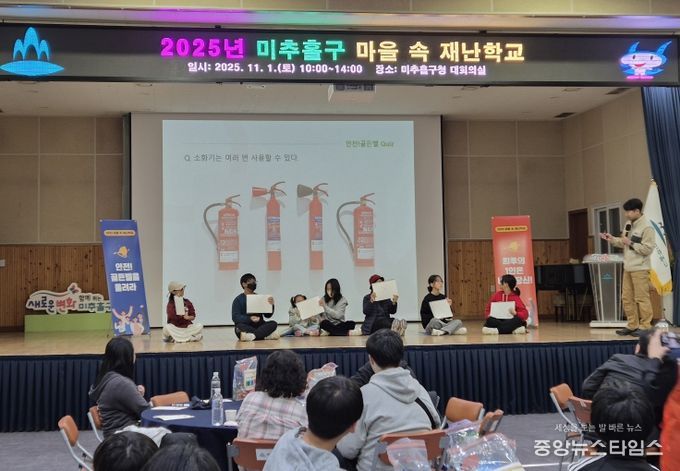 (중앙뉴스타임스 = 방재영 기자) 인천 미추홀구종합자원봉사센터(센터장 유중형)는 지난 1일 구청 대회의실에서 관내 아동, 청소년 등 다양한 연령층의 자원봉사자 120여 명이 참석한 가운데 마을 속 재난학교 ‘배우고(Go)! 체험하고(Go)! 우리 마을, 안전! 골든벨’을 진행했다.