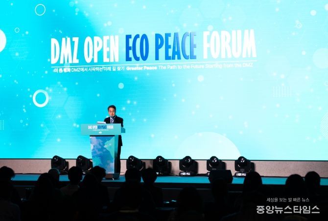 김동연 지사는 개회사를 통해 “오늘 우리는 DMZ가 회복한 평화의 가치를 인간의 세계로 이어가기 위해 이 자리에 모였다. 생태와 평화, 상생과 공존의 가치를 깊이 새기며 양적인 성장이 아니라 지속가능한 질 높은 성장을 이루어내는 것이 우리가 미래 세대에 남길 수 있는 최대의 유산”이라며 “이제 더 큰 평화를 실현해야 한다. 인간과 자연, 세대와 세대가 조화를 이루며 지속가능한 세계로 나아가야 한다. 평화와 생태, 기술과 인문이 만나 지구를 지키고 인류의 미래를 양속하고 지속시킬 수 있다는 희망이 필요하다”고 말했다.