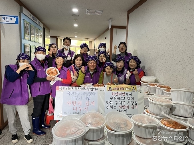 (중앙뉴스타임스 = 방재영 기자) 인천 연수구 옥련2동 지역사회보장협의체(위원장 김영미·박인규)는 지난 4일 ‘2025 희망텃밭 사랑의 김치 나누기’ 행사를 열고, 지역 내 저소득 취약계층 100세대에 손수 담근 깍두기 김치를 전달했다.
