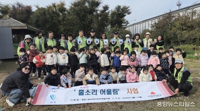 이날 중장년 1인 가구 정서지원 프로그램인 ‘홀소리 어울림 모임’ 참여자와 지역 내 어린이집 원아들은 함께 지난 봄 심은 무를 수확했다.