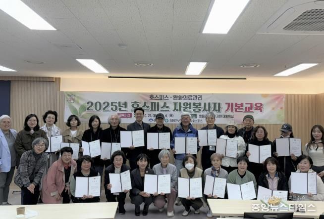 (중앙뉴스타임스 = 방재영 기자) 양평군은 6일 ‘2025년 호스피스 자원봉사자 기본교육’을 성공적으로 마무리하고 총 21명의 수료생에게 수료증을 수여했다.
