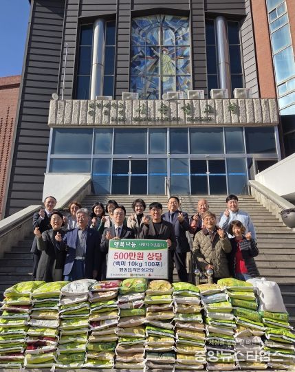 이에 이근영 팽성읍장은 “단지 쌀 100포라는 수량을 넘어, 어려운 이웃들과 함께하고 있다는 마음을 나누는 계기가 됐다”며, “시온성교회의 나눔과 이웃사랑에 깊이 감사드린다”라고 말했다.
