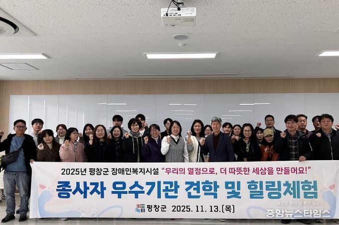 (중앙뉴스타임스 = 방재영 기자) 평창군은 관내 장애인복지시설 종사자들의 역량 강화와 직무 만족도 향상을 위해 13일, 도내 우수 사회복지시설 견학 및 힐링 체험을 했다.