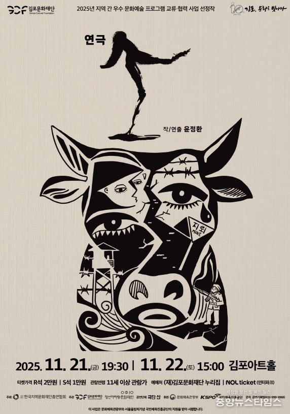 (중앙뉴스타임스 = 이광운 기자) (재)김포문화재단은 오는 11월 21일부터 22일까지 이틀동안 김포아트홀에서 연극 '소' 공연을 개최한다고 밝혔다.