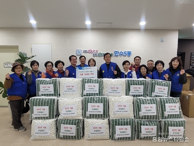 김진희 동장은 “매년 홀몸 어르신을 위한 이불 나눔과 세탁 봉사를 해주시는 바르게살기운동 만수5동 위원들께 감사드리며, 추워진 날씨에 어르신들이 건강히 지내시도록 관심과 지원을 아끼지 않겠다”라고 말했다.