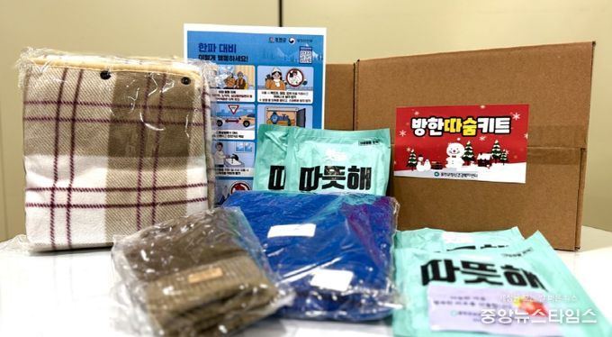 한랭질환 예방 “방한 따숨 키트”는 핫팩, 무릎담요, 장갑, 한파 시 행동요령 안내문 등 한파에 대응할 수 있는 실질적인 물품으로 구성했다.