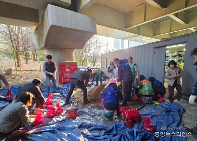 (중앙뉴스타임스 = 방재영 기자) 남양주시는 19일 자율방재단 사무실 앞 설해기지에서 별내행정복지센터가 겨울철 설해 대비를 위해 민·관 합동으로 모래주머니를 제작했다고 밝혔다.