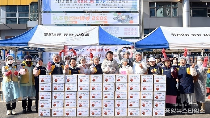 (중앙뉴스타임스 = 방재영 기자) 인천 부평구 청천2동 지역사회보장협의체는 지난 19일 어려운 이웃들을 위한 ‘사랑의 김장김치 나눔 행사’를 진행했다.