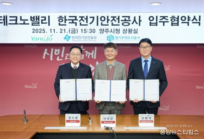(중앙뉴스타임스 = 방재영 기자) 경기주택도시공사(GH)는 21일 양주시청 상황실에서 양주시, 한국전기안전공사와 함께 ‘한국전기안전공사 북부지역본부’의 경기양주 테크노밸리 입주를 위한 협약식을 체결했다고 밝혔다.