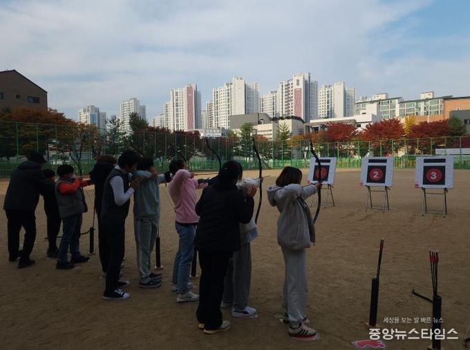 (중앙뉴스타임스 = 방재영 기자) (재)평택시청소년재단 평택시북부청소년문화의집이 청소년들에게 전통 스포츠인 우리 활쏘기를 보급함으로써 선조들의 얼과 슬기를 배울 수 있는 청소년 전통 무예 국궁 체험 ‘명궁’을 지난 9월 12일부터 11월 21일까지 운영했다.