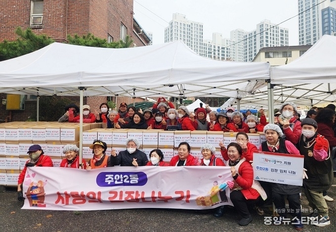 (중앙뉴스타임스 = 방재영 기자) 인천 미추홀구 주안2동 통장자율회(회장 정동현)는 지난 24일부터 이틀간 지역 내 겨울철 취약계층 지원을 위한 ‘사랑의 김장 나눔 행사’를 열고 따뜻한 나눔을 실천했다.
