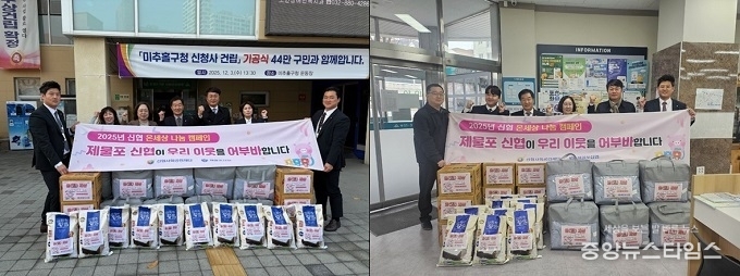 (중앙뉴스타임스 = 방재영 기자) 인천 미추홀구 제물포신협(이사장 이명진)은 지난 24~25일 도화2·3동(동장 이선자), 숭의1·3동(동장 하태숙)에 관내 취약계층을 위한 겨울 이불 15채, 라면(40개입) 12박스, 쌀(10kg) 10포를 각각 전달했다.