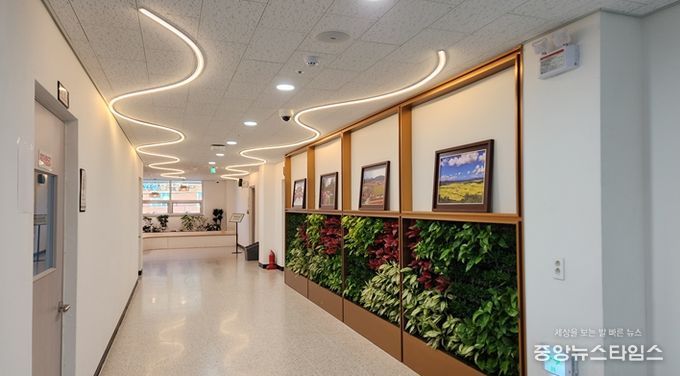 (중앙뉴스타임스 = 방재영 기자) 철원군은 7월에 조성한 와수복합어울림센터 4층 작은영화관 실내정원의 큰 호응에 힘입어, 2층 프로그램실 간 복도에 유휴공간을 활용하여 추가로 수직 정원 조성을 완료했다고 28일 밝혔다.