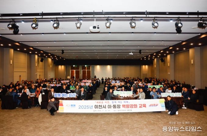 (중앙뉴스타임스 = 방재영 기자) 이천시는 26일 빌라드아모르 컨벤션홀에서 이천시 이·통장 430여 명을 대상으로 ‘2025년 이천시 이·통장 역량강화 교육’을 실시했다고 밝혔다.