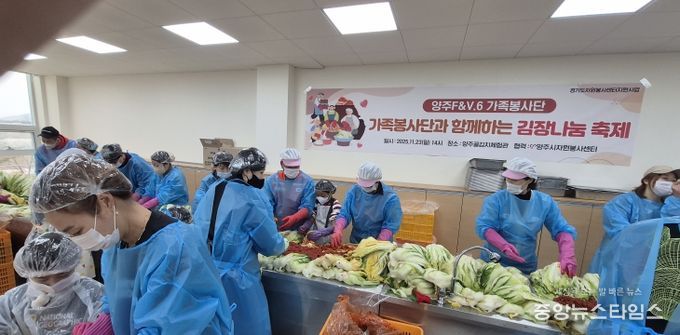 이번 봉사활동은 2025년 도민이 전하는 자원봉사2차 김장나눔 사업으로 선정된 6개 단체가“양주시 사랑의 김장나눔 릴레이”로 15일부터 경기북부영웅시대를 시작으로 16일 양주+인, 17일 양주상인회협동조합, 22일 아름다운회천사람들, 23일 둘이함께가족봉사단, 23일 양주F&V.6까지 200여명이 참여했고 10kg 김장김치 700여통을 관내 어려운 이웃들에게 배부했다.