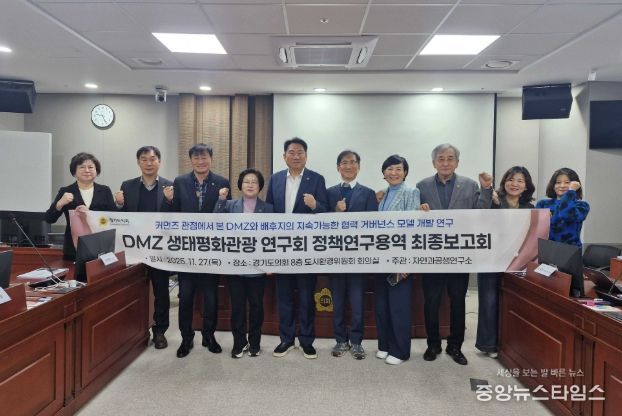 (중앙뉴스타임스 = 방재영 기자) 경기도의회 의원연구단체인 DMZ생태평화관광 연구회(회장 오준환 의원)는 지난 27일 경기도의회 도시환경위원회 회의실에서 '커먼즈 관점에서 본 DMZ와 배후지의 지속가능한 협력 거버넌스 모델 개발 연구' 용역 최종보고회를 개최했다.