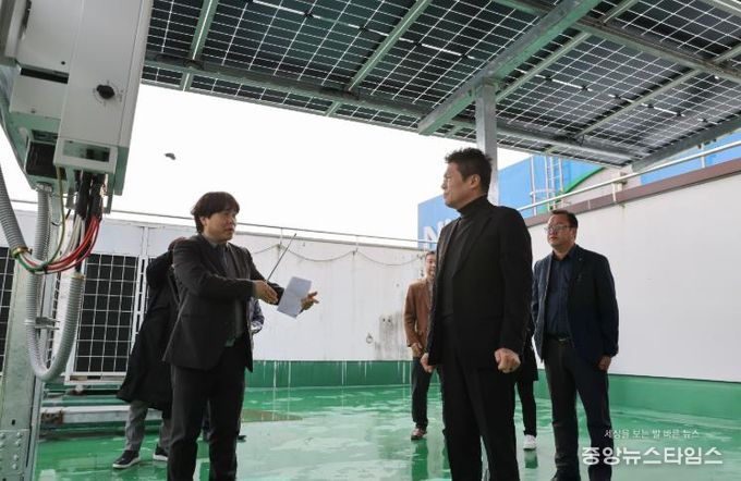 (중앙뉴스타임스 = 방재영 기자) 김정헌 인천 중구청장이 지난 27일 올해 신재생에너지 융복합지원사업을 통해 신재생에너지 설비를 지원받은 관내 시설 3개소를 찾아 사업 추진 현황과 운영 성과를 점검하고, 현장 의견을 청취하는 시간을 가졌다.