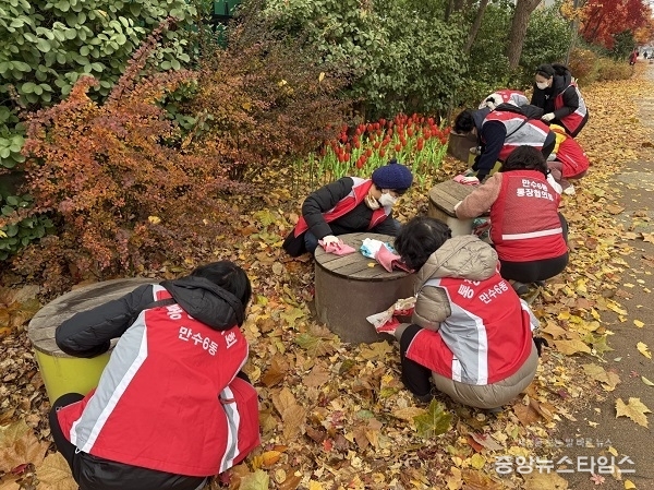 만수6동 통장자율회는 뉴서울아파트와 한국아파트 사이 도로에 있는 의자, 운동기구, 조형물 등 시설물에 대한 환경정비 활동을 했다.