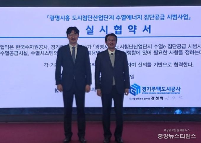 (중앙뉴스타임스 = 방재영 기자) 경기주택도시공사(GH)는 3일 GH 수원 본사 9층 역량개발센터에서 한국수자원공사(K-water)와 함께 ‘광명시흥 도시첨단산업단지 수열에너지 집단공급 시범사업’ 추진을 위한 실시협약을 체결했다고 밝혔다. 이 자리에는 양 기관 관계자 약 30명이 참석했다.