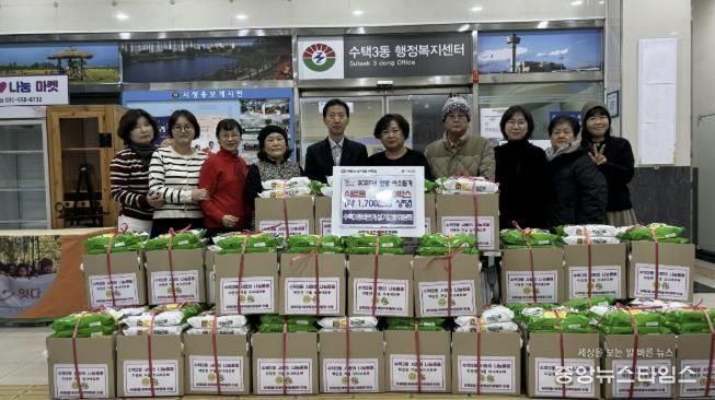 (중앙뉴스타임스 = 방재영 기자) 구리시 수택3동 바르게살기운동위원회는 지난 3일 지역사회의 어려운 이웃들이 이번 겨울을 따뜻하게 보낼 수 있도록 '사랑의 나눔 물품'을 수택3동 행정복지센터에 전달했다.