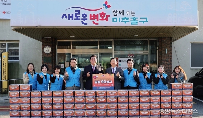 (중앙뉴스타임스 = 방재영 기자) 인천 미추홀구는 4일 (사)국제위러브유운동본부로부터 김장 김치 90상자를 전달받았다.