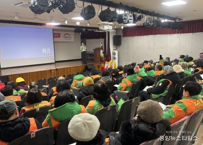 (중앙뉴스타임스 = 방재영 기자) 광명시는 4일 열린시민청 2층 민방위교육장에서 광명시 자율방재단 단원 70여 명을 대상으로 재난 대응 능력 향상을 위한 ‘2025년 자율방재단 재해구호교육’을 실시했다.