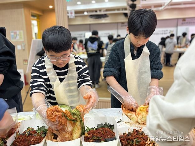 (중앙뉴스타임스 = 방재영 기자) 하남시덕풍청소년문화의집(관장 정재우) 그랑청소년방과후아카데미 청소년들은 2025년 한 해를 마무리하며 지역사회에 감사와 온기를 전하기 위해 직접 담근 ‘사랑의 김장김치’ 25개를 덕풍2동행정복지센터(동장 박향춘)와 연계하여 전달했다고 밝혔다.