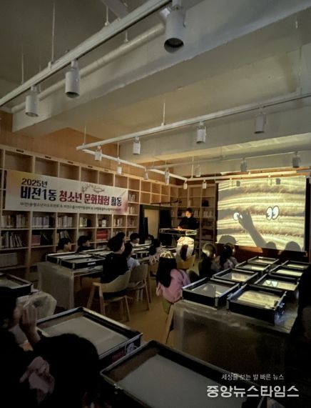 (중앙뉴스타임스 = 방재영 기자) 평택시 비전1동 청소년지도위원회는 지난 2일부터 3일까지 이틀간 관내 지역아동센터 2곳에서 ‘2025 청소년 문화 체험 샌드아트 공연 및 체험 행사’를 성황리에 개최했다.