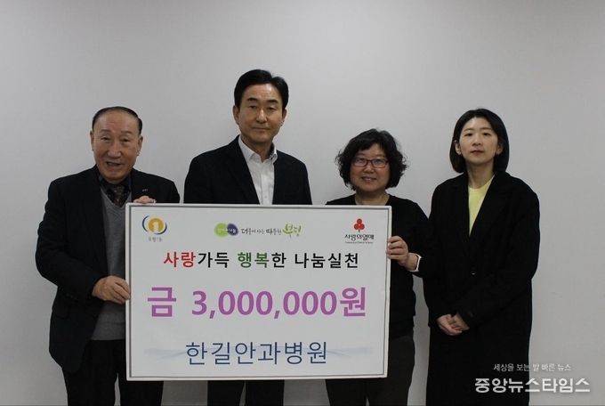 부평 한길안과병원(이사장 정규형)을 대표해 성금을 전달한 박덕영 부평 한길안과병원 행정부원장은 “지역사회와 함께 나누면서 성장하는 것이 병원의 덕목”이라며 “작은 정성이지만 도움이 필요한 이웃들에게 따듯한 위로가 되길 바란다”고 밝혔다.