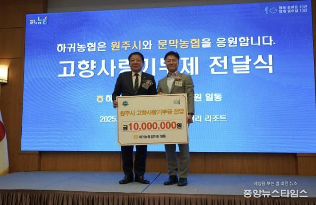 이번 기부는 원주 문막농협과 제주 하귀농협이 2015년 맺은 자매결연 10주년을 기념하기 위해 이뤄졌으며, 지역 간 상생협력의 모범 사례가 될 것으로 기대된다.