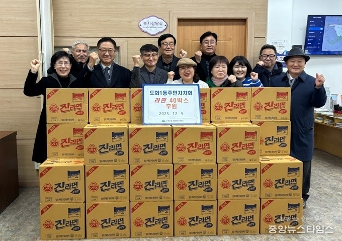 (중앙뉴스타임스 = 방재영 기자) 인천 미추홀구 도화1동 주민자치회(회장 정광세)는 지난 9일 연말을 맞이해 지역 내 취약계층을 위한 라면 40박스를 기부했다.