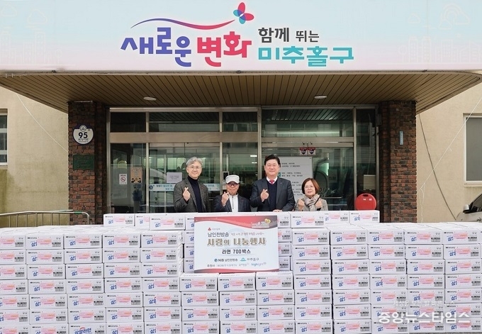 (중앙뉴스타임스 = 방재영 기자) 인천 미추홀구는 10일 NIB남인천방송(대표 김인태)으로부터 저소득 가정을 위한 라면 700상자를 전달받았다.
