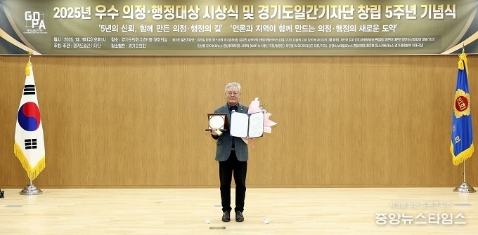 (중앙뉴스타임스 = 방재영 기자) 경기도의회 문화체육관광위원회 홍원길 의원(국민의힘, 김포1)이 10일 경기도일간기자단이 주관한 ‘2025년 우수 의정·행정대상’ 시상식에서 경기도의회 그랜드마스터상을 수상했다.